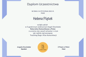 Webinar "Naturalna Komunikacja Psów" Angela Stockdale, 2021