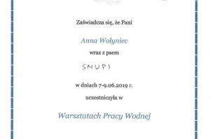 Warsztaty Pracy Wodnej, Wodna Sekcja Psów Ratowniczych w Szczecinie, 2019 (jako uczestnik i organizator)