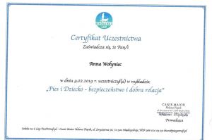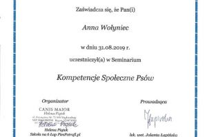 Seminarium "Kompetencje Społeczne Psów", lek. wet. J. Łapińska, 2019 (jako uczestnik i organizator)