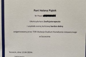 kurs zawodowy Zoofizjoterapeuta, TEB Szczecin, 2024