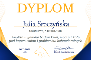 szkolenie "Analiza wyników badań pod kątem zmian i problemów behawioralnych" Centrum Szkoleń Animalia"