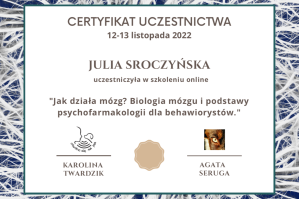 szkolenie "Jak działa mózg? Biologia mózgu i podstawy farmakoterapii dla behawiorystów"