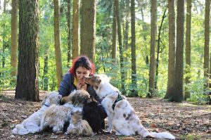 W moim domu zawsze były zwierzęta, wychowywałam się z jamniczką, która traktowała mnie jak swoje szczenię. Były również zeberki, rybki. Jednak to zawsze pies był tym najbliższym mi gatunkiem. Następnie pojawiła się Lila - Shih Tzu, a do niej dołączył Marcin, Kuba i Milo, następnie po 3 latach Blue i równolegle z nią - kotka Gruszka (nasza królewna na stercie liści). W 2018 roku pojawił się Belcanto, Owczarek Australijski, z którym do tej pory przepracowuje uroki tej rasy, a także "wyjątkowość" tego właśnie osobnika. Jest psem reaktywnym, więc moja fascynacja frisbee czy agility niestety nie jest na ten moment do spełnienia. Rozpoczęliśmy trenowanie pasienia, niestety ze względów technicznych musieliśmy przerwać. Na ten moment uczymy się i szkolimy w Nosework. Na początku 2020 roku Kuba zaczął mieć problemy ze wzrokiem. Najpierw stracił wzrok w jednym oku i niestety mimo prób, walki i leczenia, w czerwcu 2021 stracił wzrok całkowicie. Od tej pory system się zmienił, funkcjonowanie i praca z psem niewidomym różni się od pracy z psem, który wszystko doskonale widzi. Ale stado mamy na medal, bo rewelacyjnie rozumieją z czym to wszystko się je. W grudniu 2020 roku staliśmy się domem tymczasowym dla dwóch małych kociaków, z czego jedno z zaburzeniami behawioralnymi, które udaje nam się rozpracowywać, krok po kroku. Natomiast na początku sierpnia 2021 trafiło do nas kociątko z Wielkopolski. Uwielbiam pracować z dziećmi, pomagać dzieciakom rozumieć psy i uczyć je jak się powinno przy psach zachowywać. Miałam również przyjemność gościć z psem Marcinem w szkole, a także w przedszkolu na zajęciach edukacyjnych z udziałem psa. Prywatnie amatorsko bawię się fotografią, a do końca szkoły średniej śpiewałam w szczecińskich chórach. Na ten moment moje życie zeszło na psy i obawiam się, że tak już zostanie."