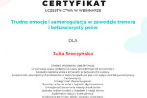 "Trudne emocje i samoregulacja w zawodzie trenera psów i behawiorysty" Wojtków Szkolenia