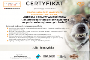 szkolenie "Psychofarmakologia dla trenerów i behawiorystów psów", lek. wet. Karolina Twardzik, 2021