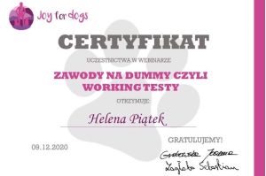 Webinar "Zawody na dummy, working testy" Joanna Grabowska, Joy for Dogs, 2020